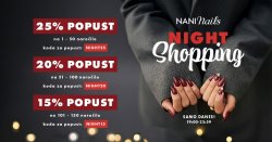 NIGHT SHOPPING 19.00-23.59: Prvih 50 naročil – 25% popust (koda NIGHT25), naslednjih 50 naročil – 20% popust (koda NIGHT20), naslednjih 50 naročil – 15% popust (koda NIGHT15)